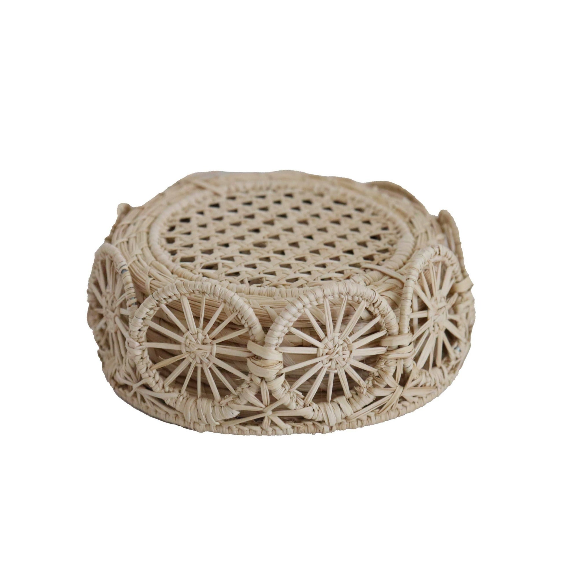 Materials: Iraca fiber and Wire structure. Diameter: 10 CM. Includes 4 coasters.