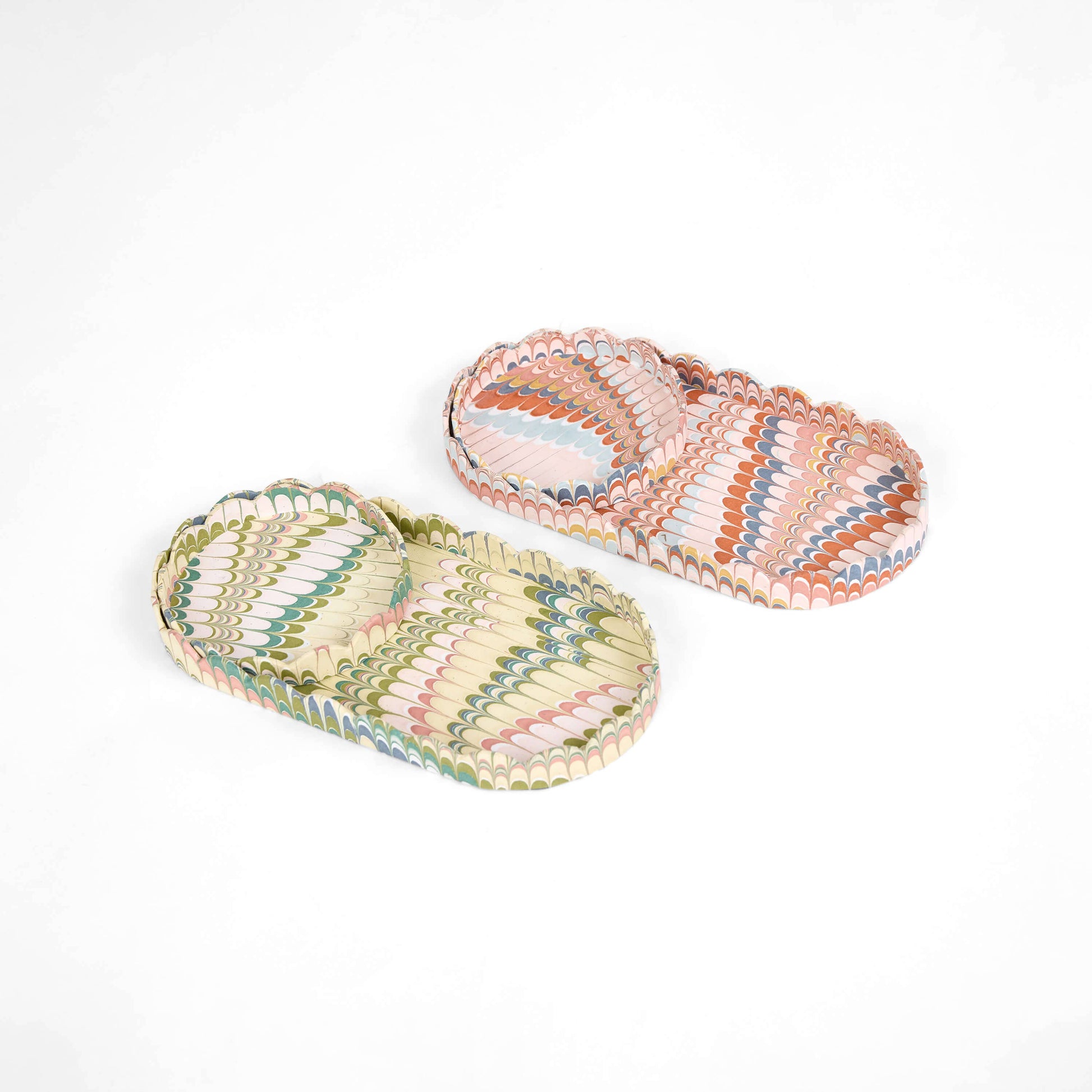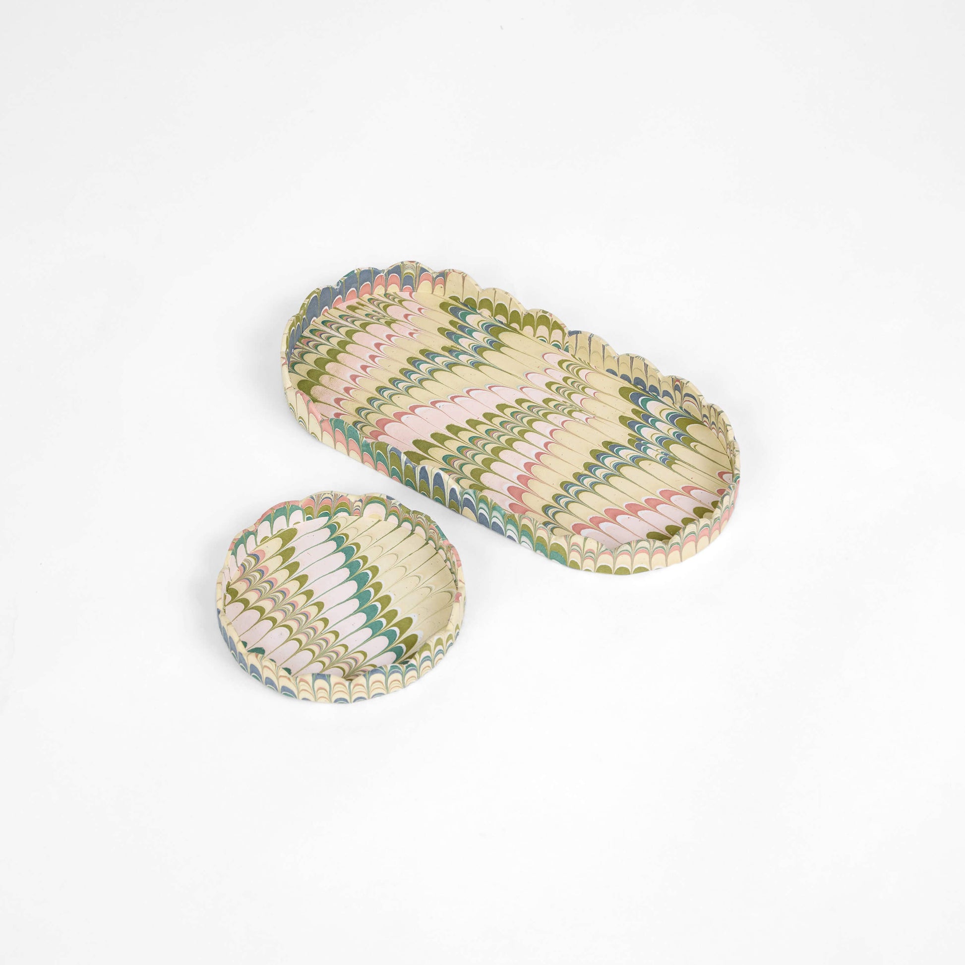 Marbled Round Scalloped Tray Set - Moss Mountain