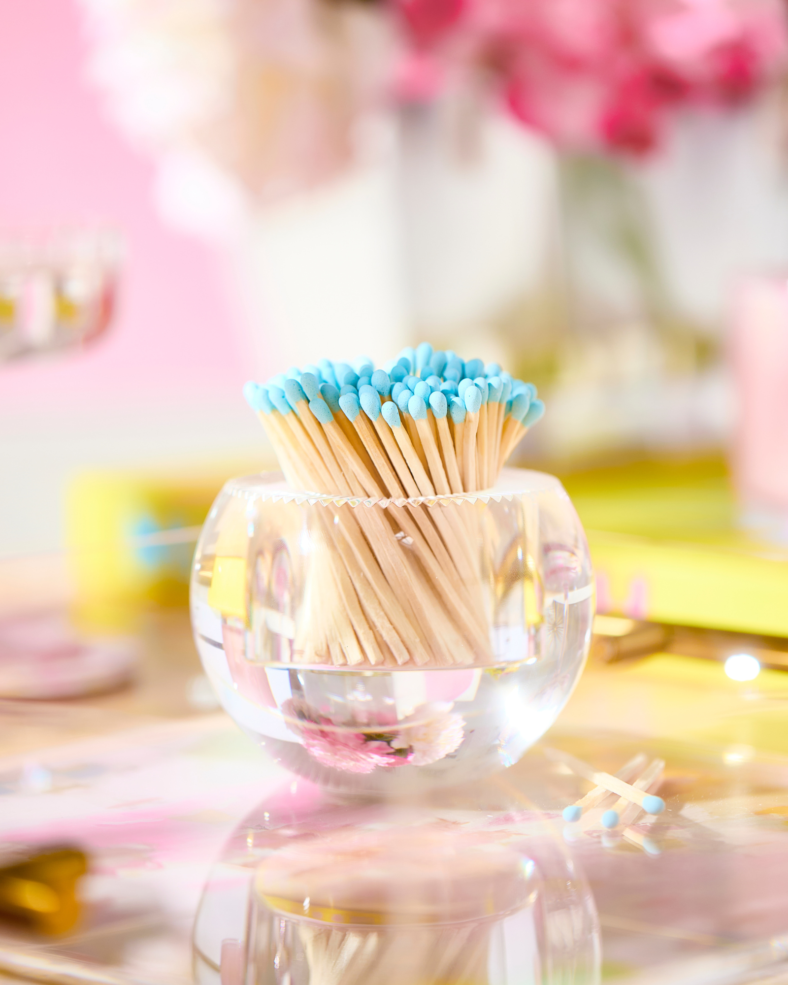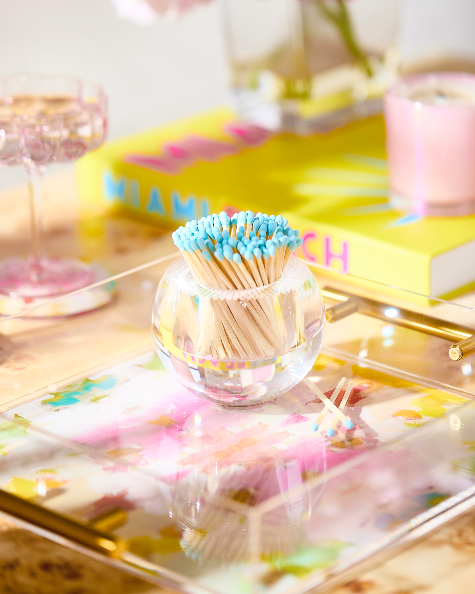 This acrylic match strike is the perfect accessory for your coffee table, desk, or any space that could use a little flair. It features a strike pad on the bottom and comes with 140 matches. Size: 3.5''D x 3'' H; Includes 140 matches.