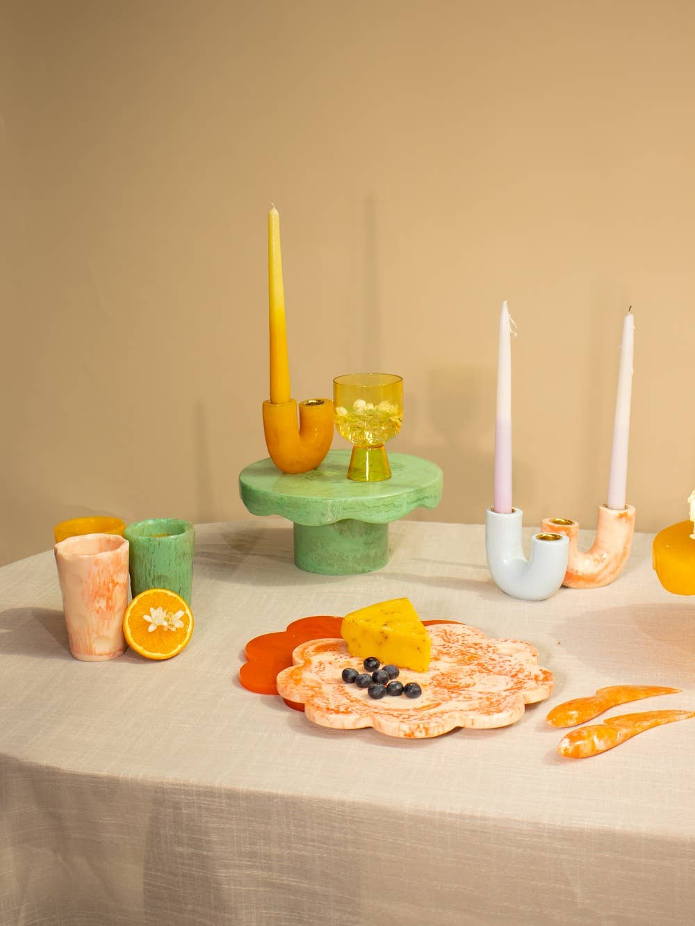 Scallop Resin Cheese Charcuterie Board Ivory - Pink